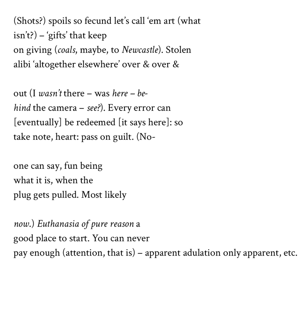 Rob Stanton from “Taken (ii)” 176 177 178 181 183 184 187 189 190 Rob Stanton is the author of The Method (Penned in the Margins, 2011), Trip- (Knives Forks and Spoons, 2013) and, in collaboration with Colin Winborn, Takes, Cuts (Knives Forks and Spoons, 2018). He lives and teaches in Austin, TX.