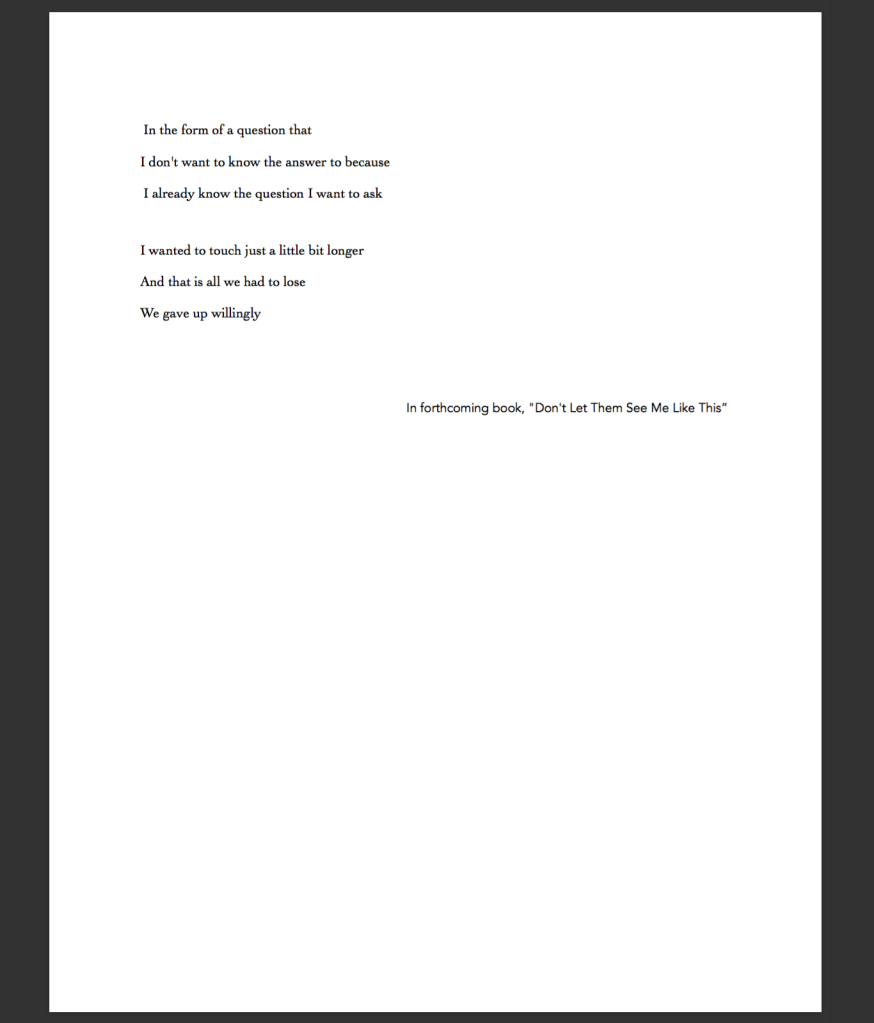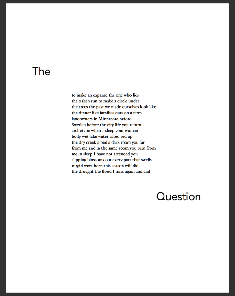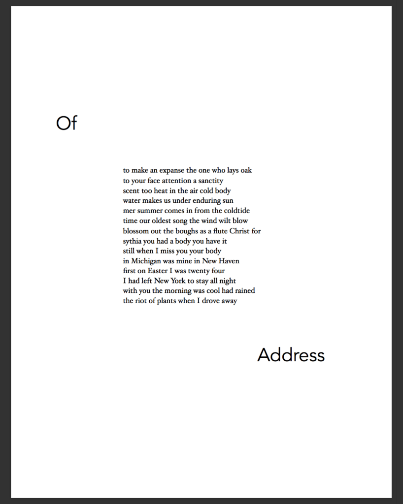 KATIE NAUGHTON’s work can be found in jubilat and Lambda Literary’s Poetry Spotlight. She is a PhD student in the poetics program at the State University of New York at Buffalo and holds an MFA from Colorado State University.